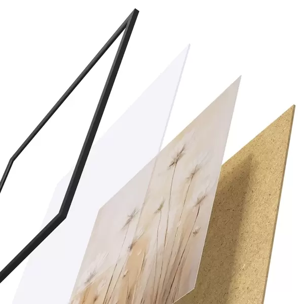 A poszter keretből, plexiből, nyomtatott képből és forgácslap hátlapból áll. A poszter a hátoldalon található rögzítőknek köszönhetően azonnal felakasztható a falra.