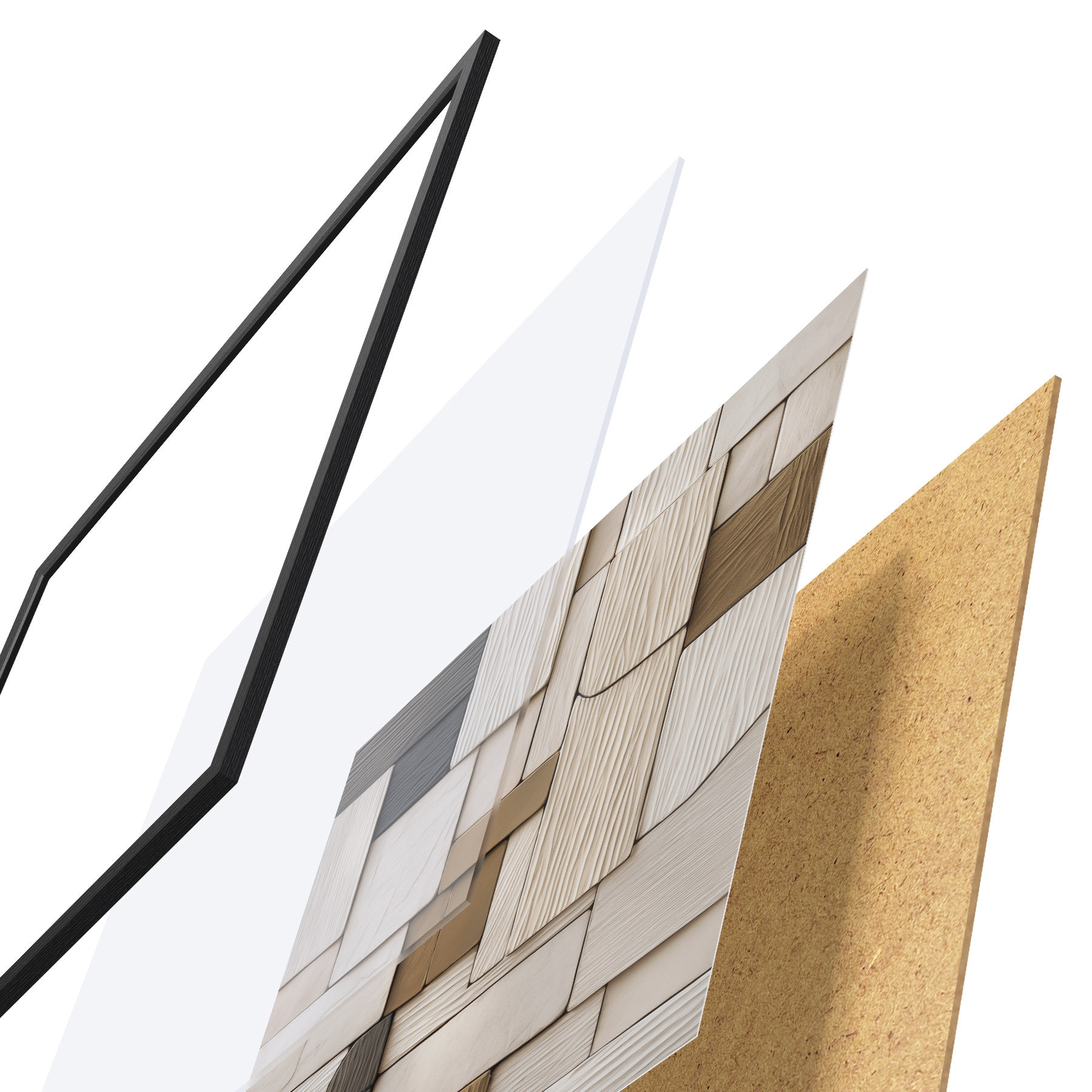 A poszter keretből, plexiből, nyomtatott képből és forgácslap hátlapból áll. A poszter a hátoldalon található rögzítőknek köszönhetően azonnal felakasztható a falra.
