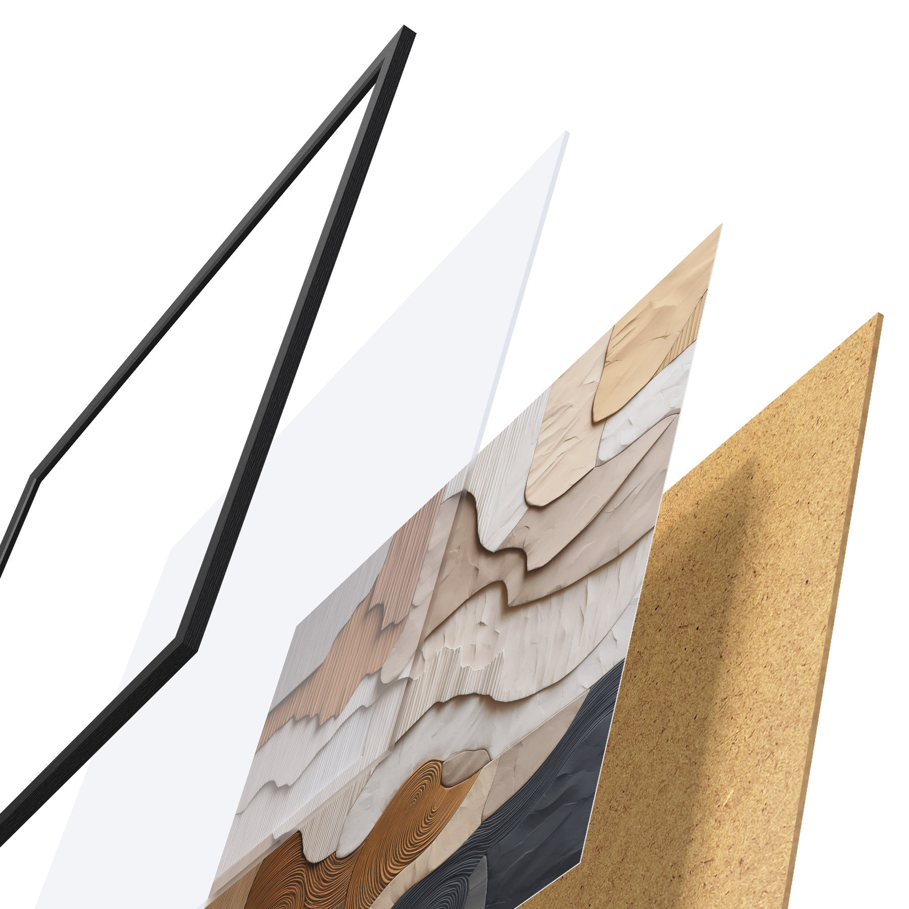 A poszter keretből, plexiből, nyomtatott képből és forgácslap hátlapból áll. A poszter a hátoldalon található rögzítőknek köszönhetően azonnal felakasztható a falra.