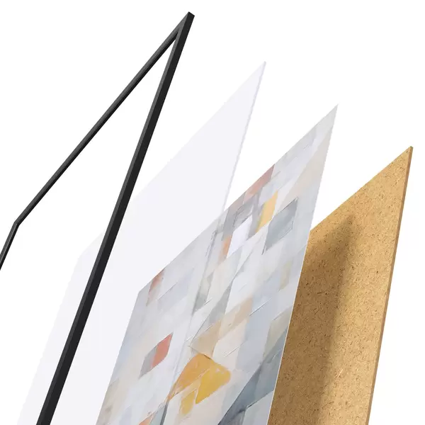 A poszter keretből, plexiből, nyomtatott képből és forgácslap hátlapból áll. A poszter a hátoldalon található rögzítőknek köszönhetően azonnal felakasztható a falra.