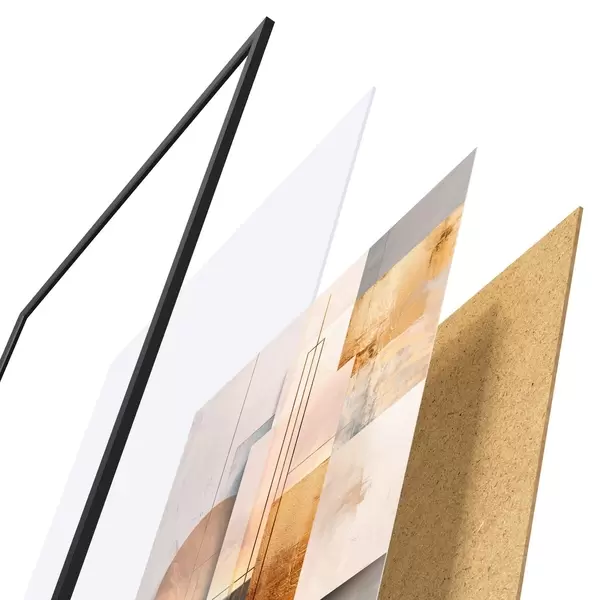 A poszter keretből, plexiből, nyomtatott képből és forgácslap hátlapból áll. A poszter a hátoldalon található rögzítőknek köszönhetően azonnal felakasztható a falra.