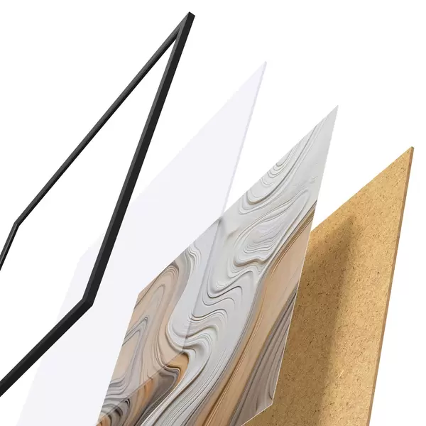 A poszter keretből, plexiből, nyomtatott képből és forgácslap hátlapból áll. A poszter a hátoldalon található rögzítőknek köszönhetően azonnal felakasztható a falra.