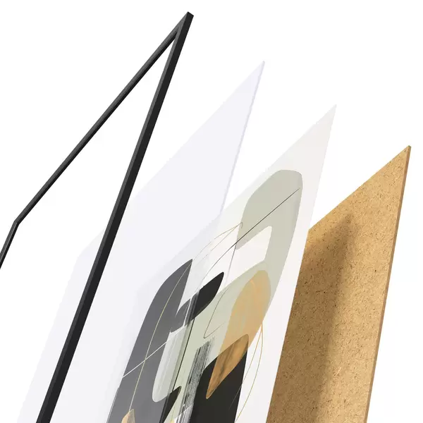 A poszter keretből, plexiből, nyomtatott képből és forgácslap hátlapból áll. A poszter a hátoldalon található rögzítőknek köszönhetően azonnal felakasztható a falra.