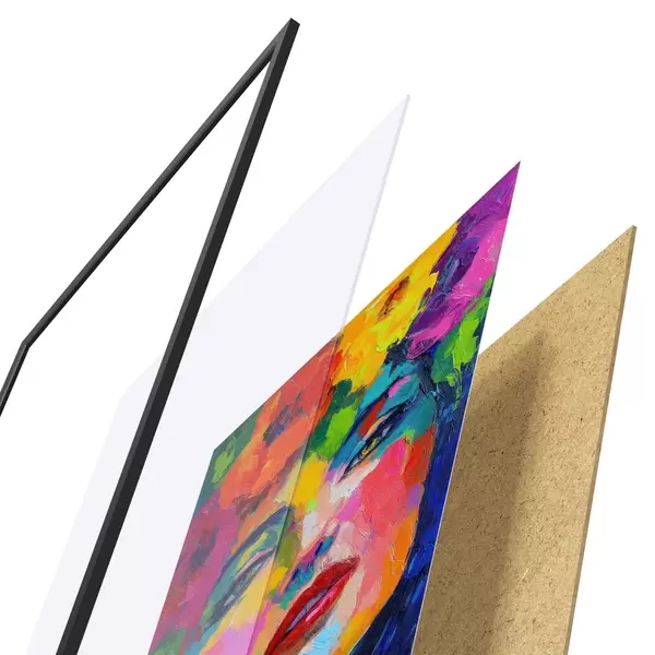 A poszter keretből, plexiből, nyomtatott képből és forgácslap hátlapból áll. A poszter a hátoldalon található rögzítőknek köszönhetően azonnal felakasztható a falra.