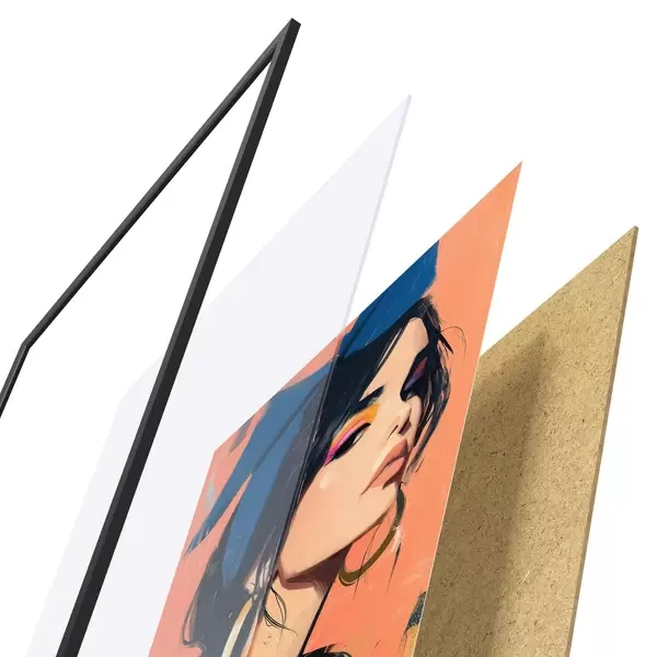 A poszter keretből, plexiből, nyomtatott képből és forgácslap hátlapból áll. A poszter a hátoldalon található rögzítőknek köszönhetően azonnal felakasztható a falra.