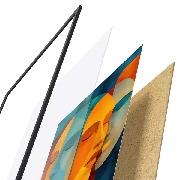 A poszter keretből, plexiből, nyomtatott képből és forgácslap hátlapból áll. A poszter a hátoldalon található rögzítőknek köszönhetően azonnal felakasztható a falra.