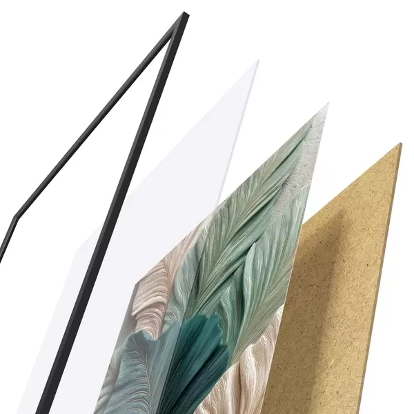 A poszter keretből, plexiből, nyomtatott képből és forgácslap hátlapból áll. A poszter a hátoldalon található rögzítőknek köszönhetően azonnal felakasztható a falra.