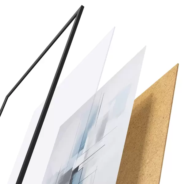 A poszter keretből, plexiből, nyomtatott képből és forgácslap hátlapból áll. A poszter a hátoldalon található rögzítőknek köszönhetően azonnal felakasztható a falra.