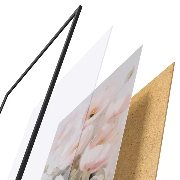 A poszter keretből, plexiből, nyomtatott képből és forgácslap hátlapból áll. A poszter a hátoldalon található rögzítőknek köszönhetően azonnal felakasztható a falra.