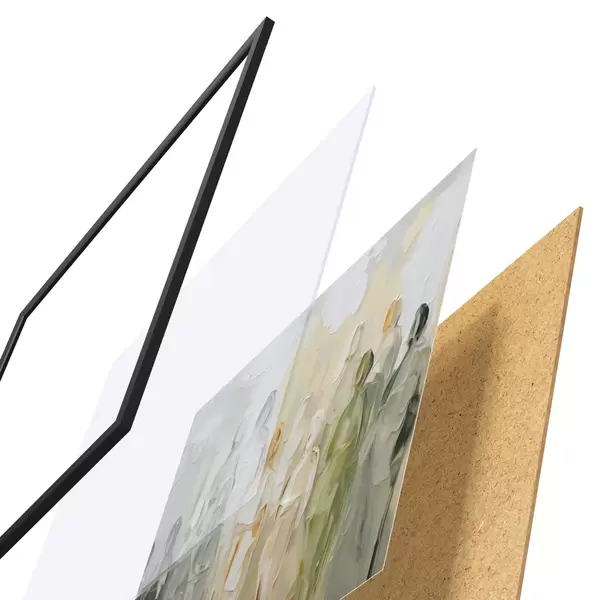 A poszter keretből, plexiből, nyomtatott képből és forgácslap hátlapból áll. A poszter a hátoldalon található rögzítőknek köszönhetően azonnal felakasztható a falra.