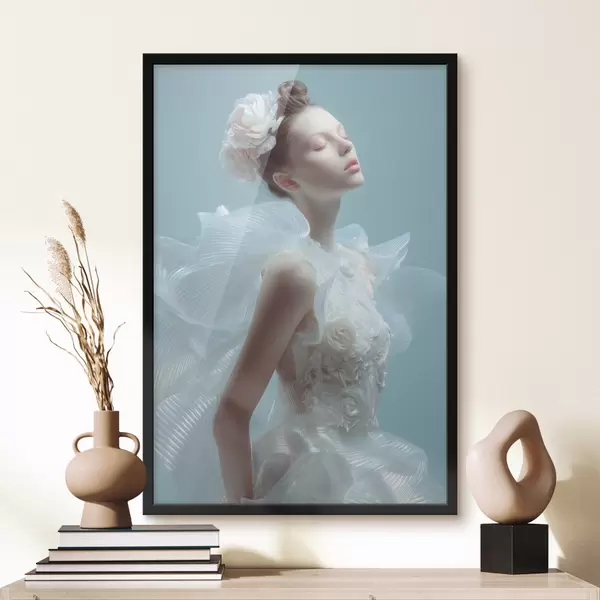 Plakát a sziklán egy finom lány fehér ruhában f48288