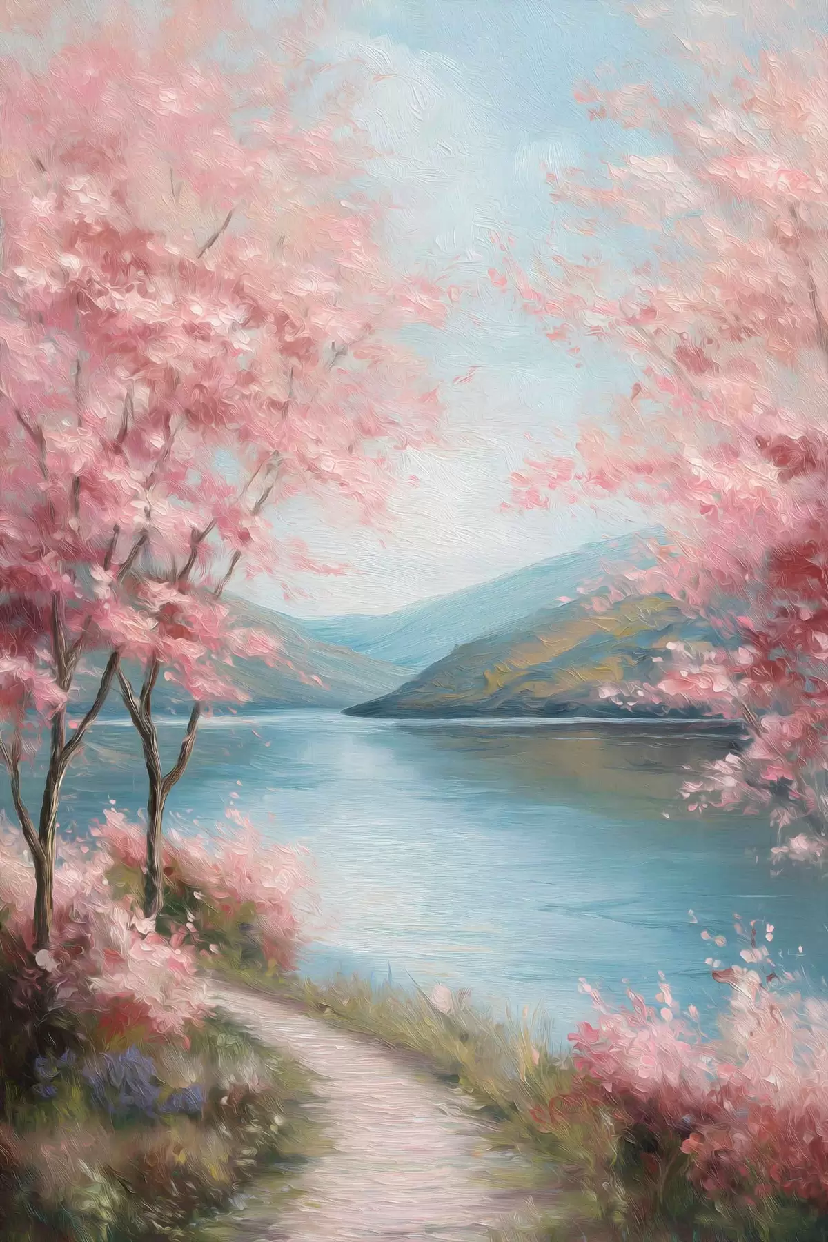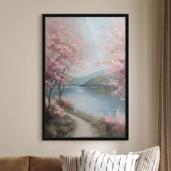 Poster rózsaszín fákkal tarkított táj olajfestmény stílusban Nr f48290