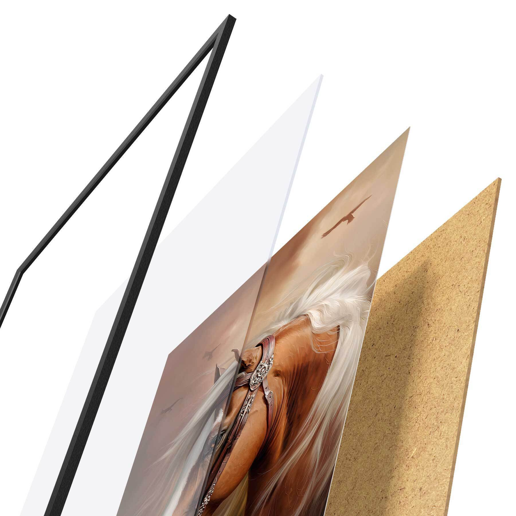 A poszter keretből, plexiből, nyomtatott képből és forgácslap hátlapból áll. A poszter a hátoldalon található rögzítőknek köszönhetően azonnal felakasztható a falra.