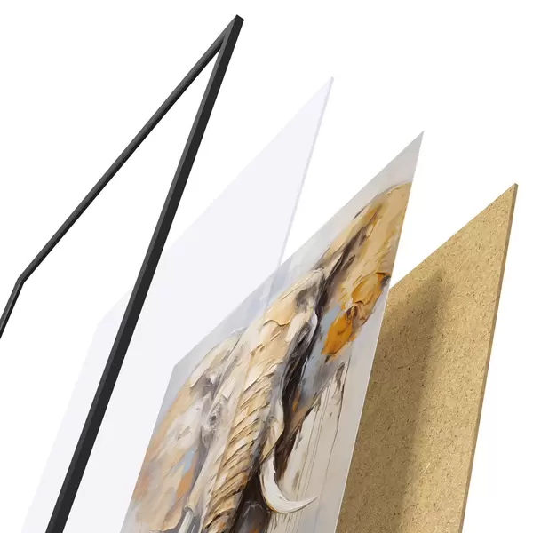 A poszter keretből, plexiből, nyomtatott képből és forgácslap hátlapból áll. A poszter a hátoldalon található rögzítőknek köszönhetően azonnal felakasztható a falra.