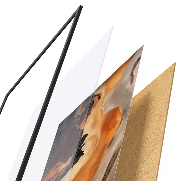 A poszter keretből, plexiből, nyomtatott képből és forgácslap hátlapból áll. A poszter a hátoldalon található rögzítőknek köszönhetően azonnal felakasztható a falra.