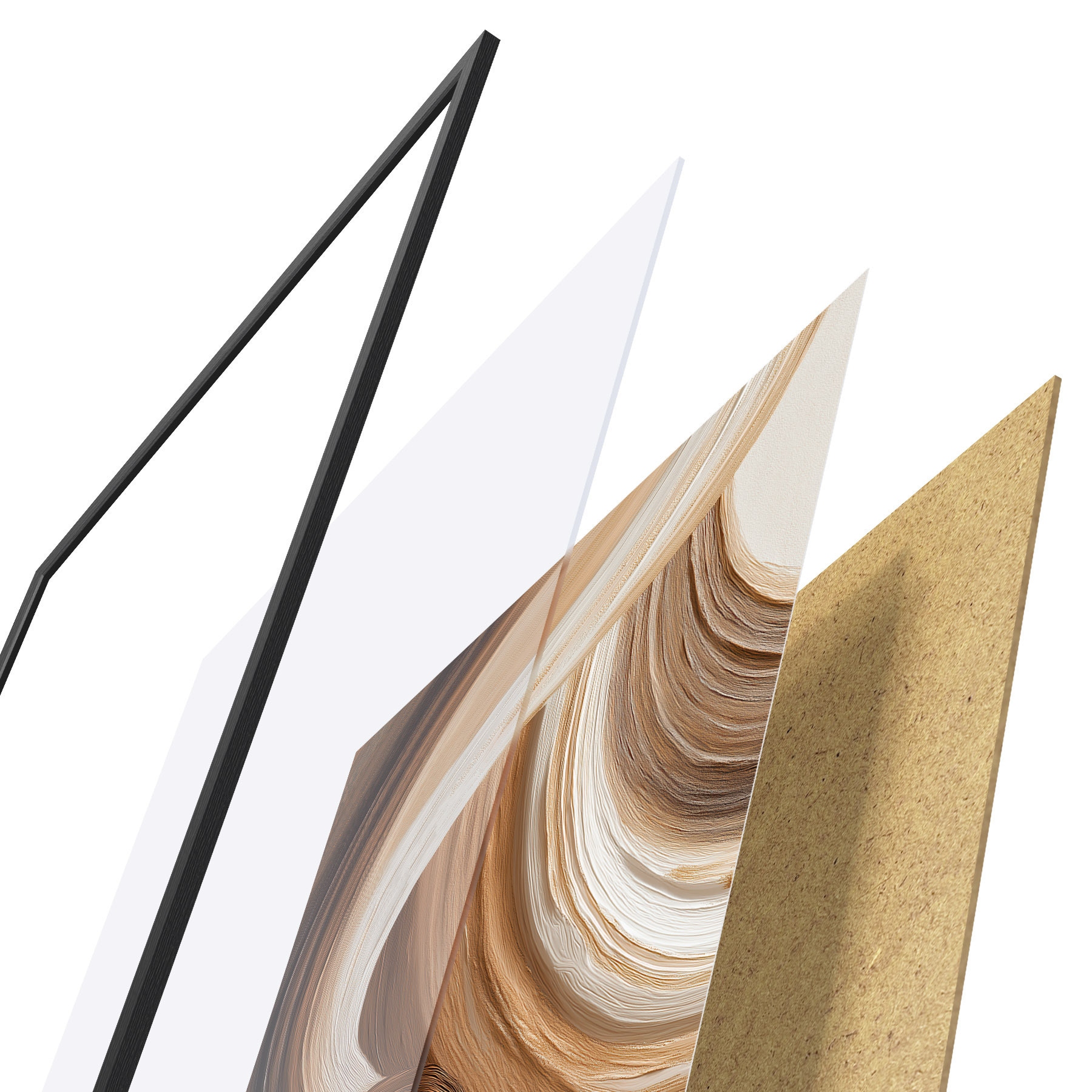 A poszter keretből, plexiből, nyomtatott képből és forgácslap hátlapból áll. A poszter a hátoldalon található rögzítőknek köszönhetően azonnal felakasztható a falra.