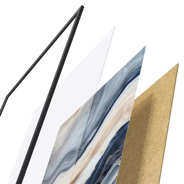 A poszter keretből, plexiből, nyomtatott képből és forgácslap hátlapból áll. A poszter a hátoldalon található rögzítőknek köszönhetően azonnal felakasztható a falra.