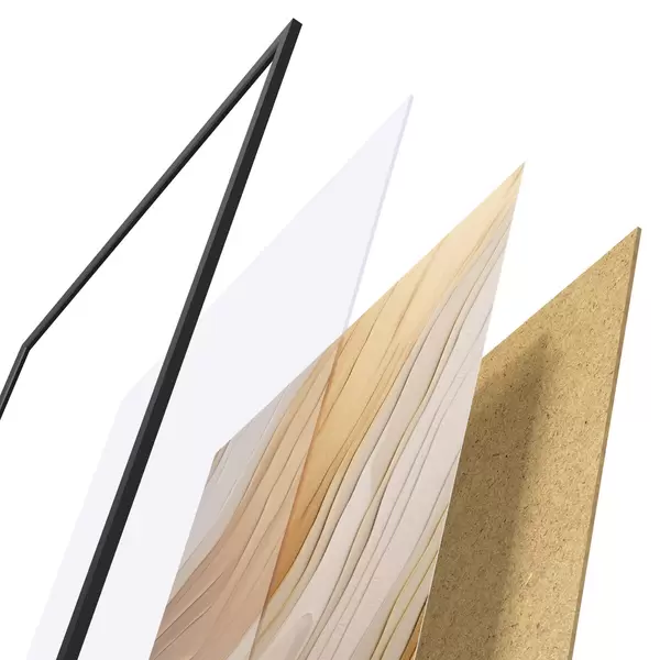 A poszter keretből, plexiből, nyomtatott képből és forgácslap hátlapból áll. A poszter a hátoldalon található rögzítőknek köszönhetően azonnal felakasztható a falra.