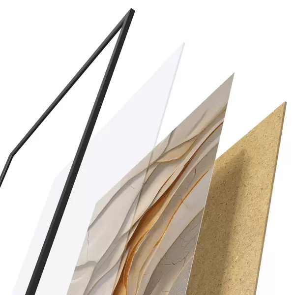A poszter keretből, plexiből, nyomtatott képből és forgácslap hátlapból áll. A poszter a hátoldalon található rögzítőknek köszönhetően azonnal felakasztható a falra.