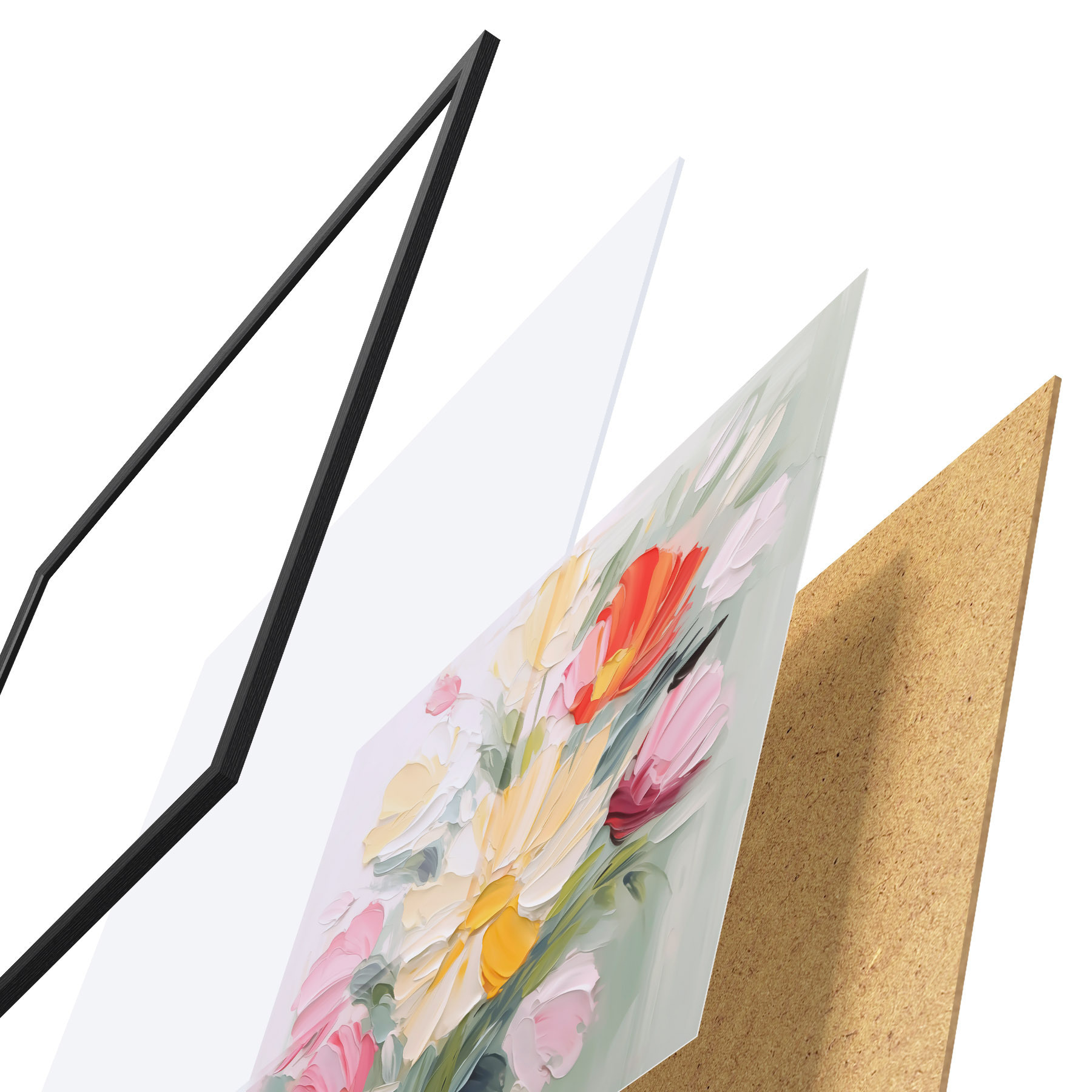 A poszter keretből, plexiből, nyomtatott képből és forgácslap hátlapból áll. A poszter a hátoldalon található rögzítőknek köszönhetően azonnal felakasztható a falra.
