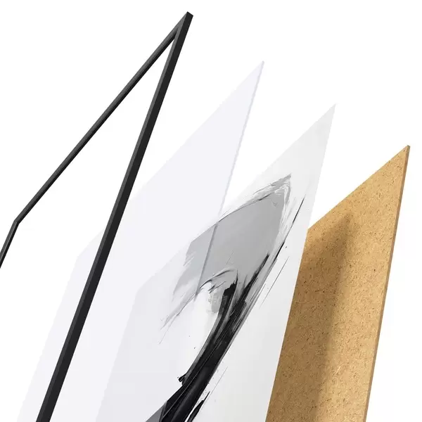 A poszter keretből, plexiből, nyomtatott képből és forgácslap hátlapból áll. A poszter a hátoldalon található rögzítőknek köszönhetően azonnal felakasztható a falra.