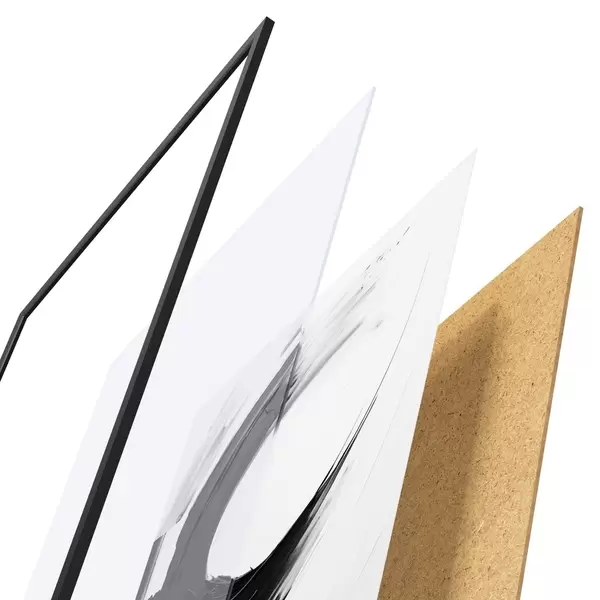 A poszter keretből, plexiből, nyomtatott képből és forgácslap hátlapból áll. A poszter a hátoldalon található rögzítőknek köszönhetően azonnal felakasztható a falra.