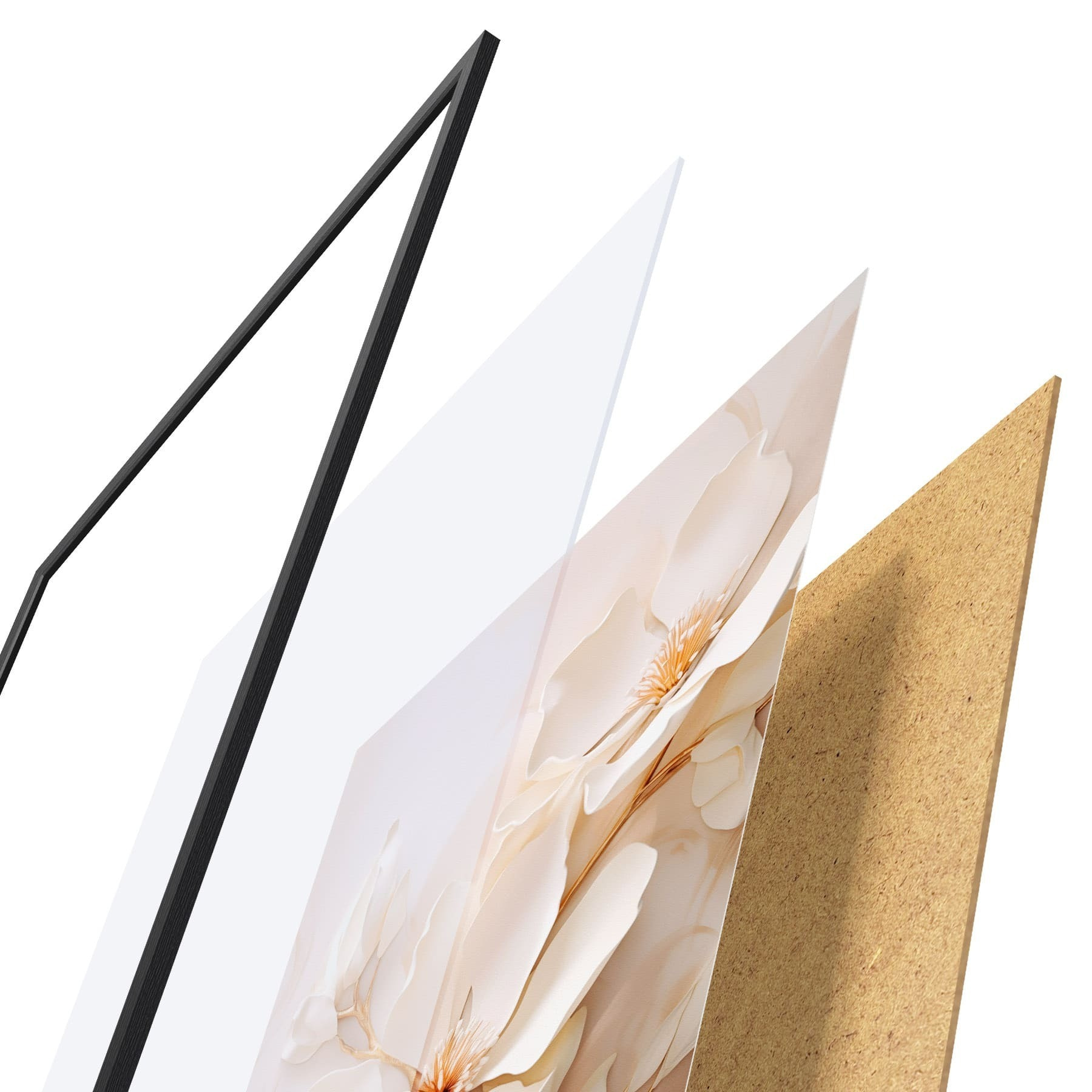 A poszter keretből, plexiből, nyomtatott képből és forgácslap hátlapból áll. A poszter a hátoldalon található rögzítőknek köszönhetően azonnal felakasztható a falra.