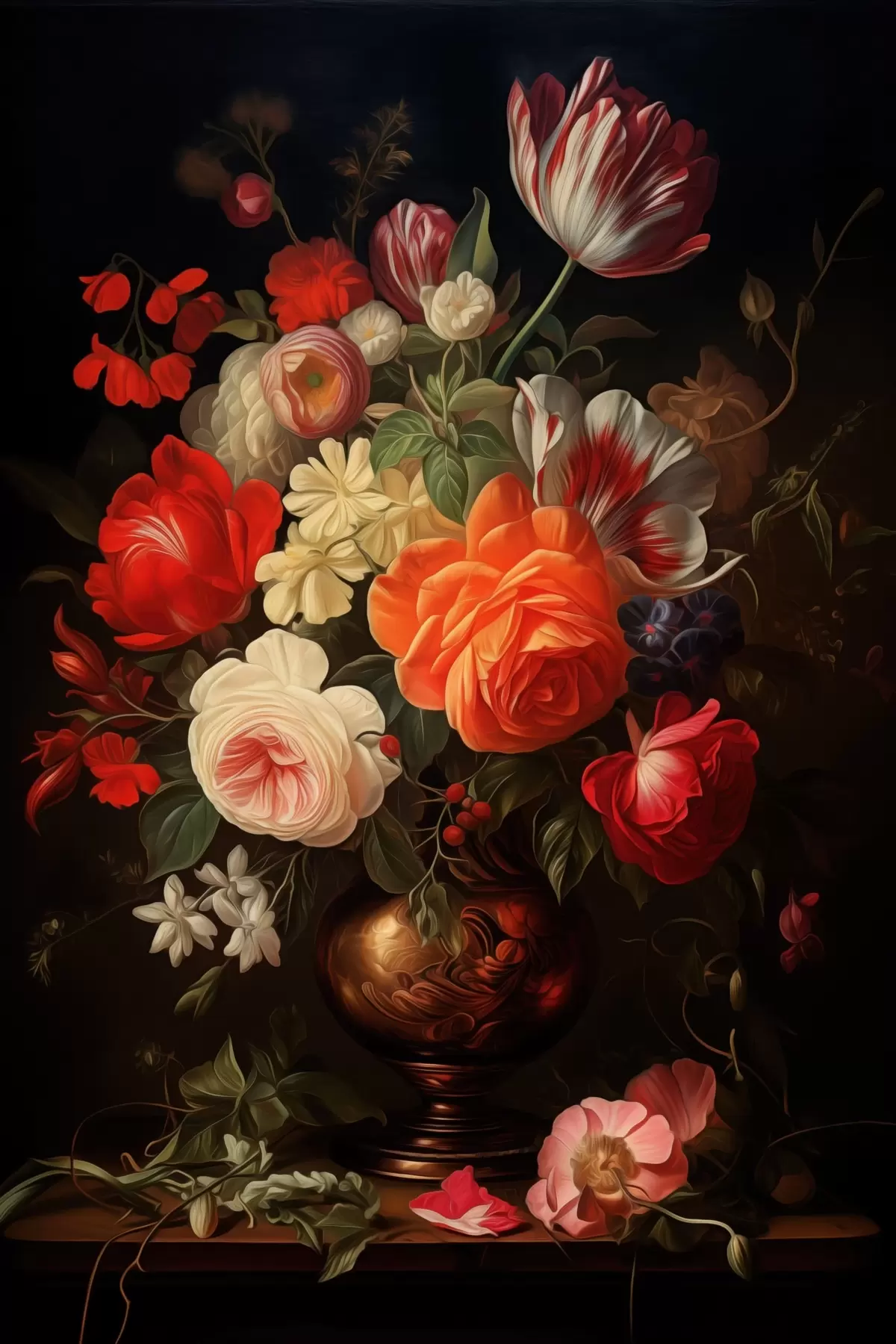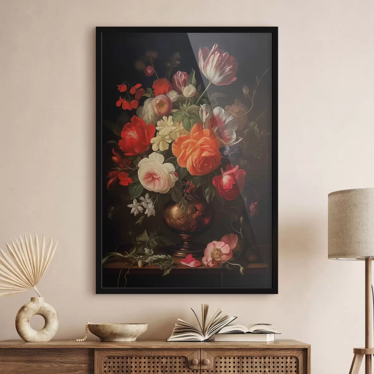 Poster Virágcsokor vázában sötét háttér előtt Nr f48351