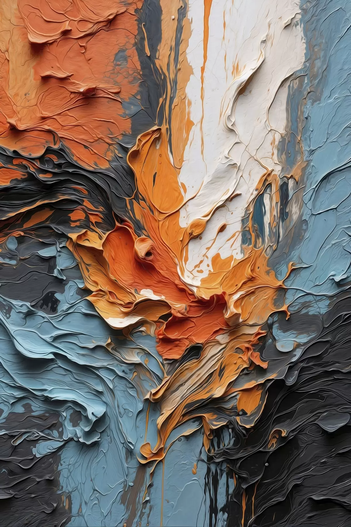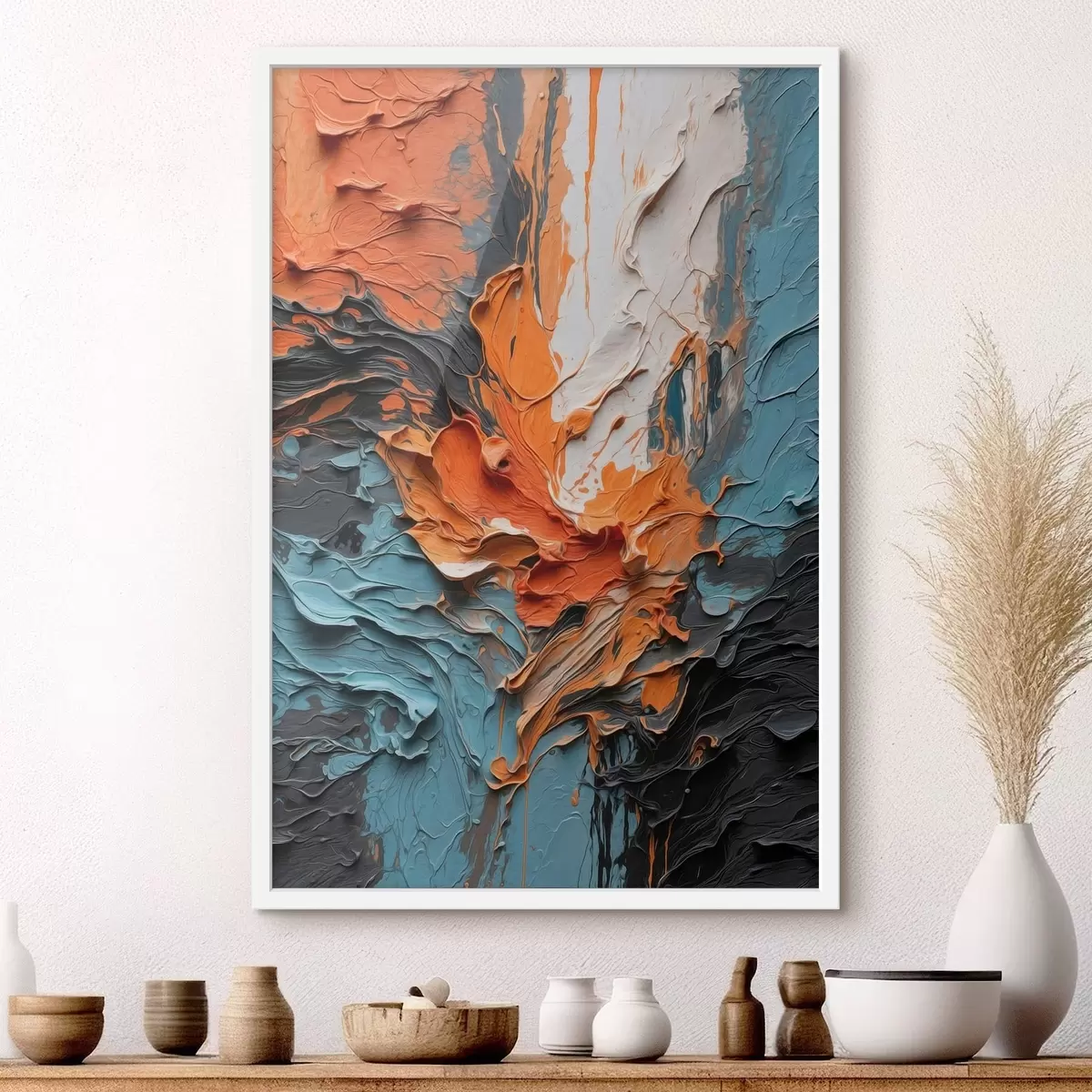 Plakát a sziklán Világos, absztrakt ecsetvonások narancssárga és kék árnyalatokban f48359