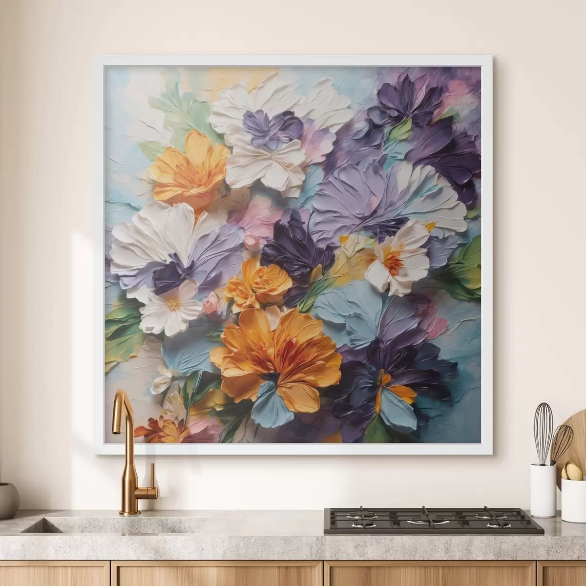 Poster Élénk, texturált virágok pasztell háttér előtt Nr f48363