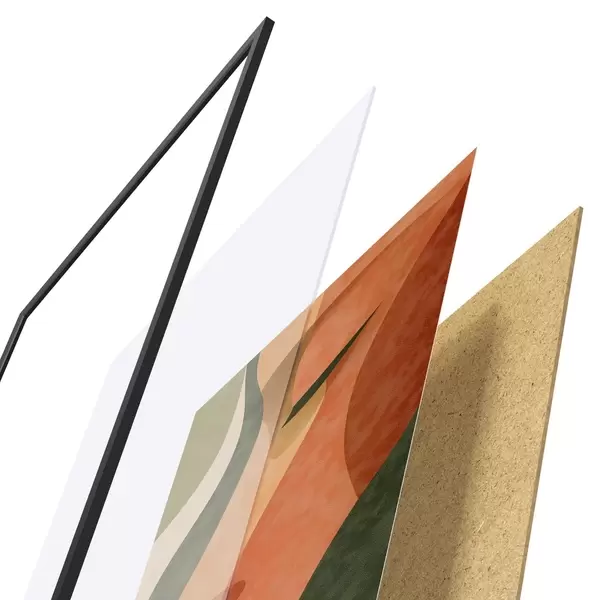 A poszter keretből, plexiből, nyomtatott képből és forgácslap hátlapból áll. A poszter a hátoldalon található rögzítőknek köszönhetően azonnal felakasztható a falra.