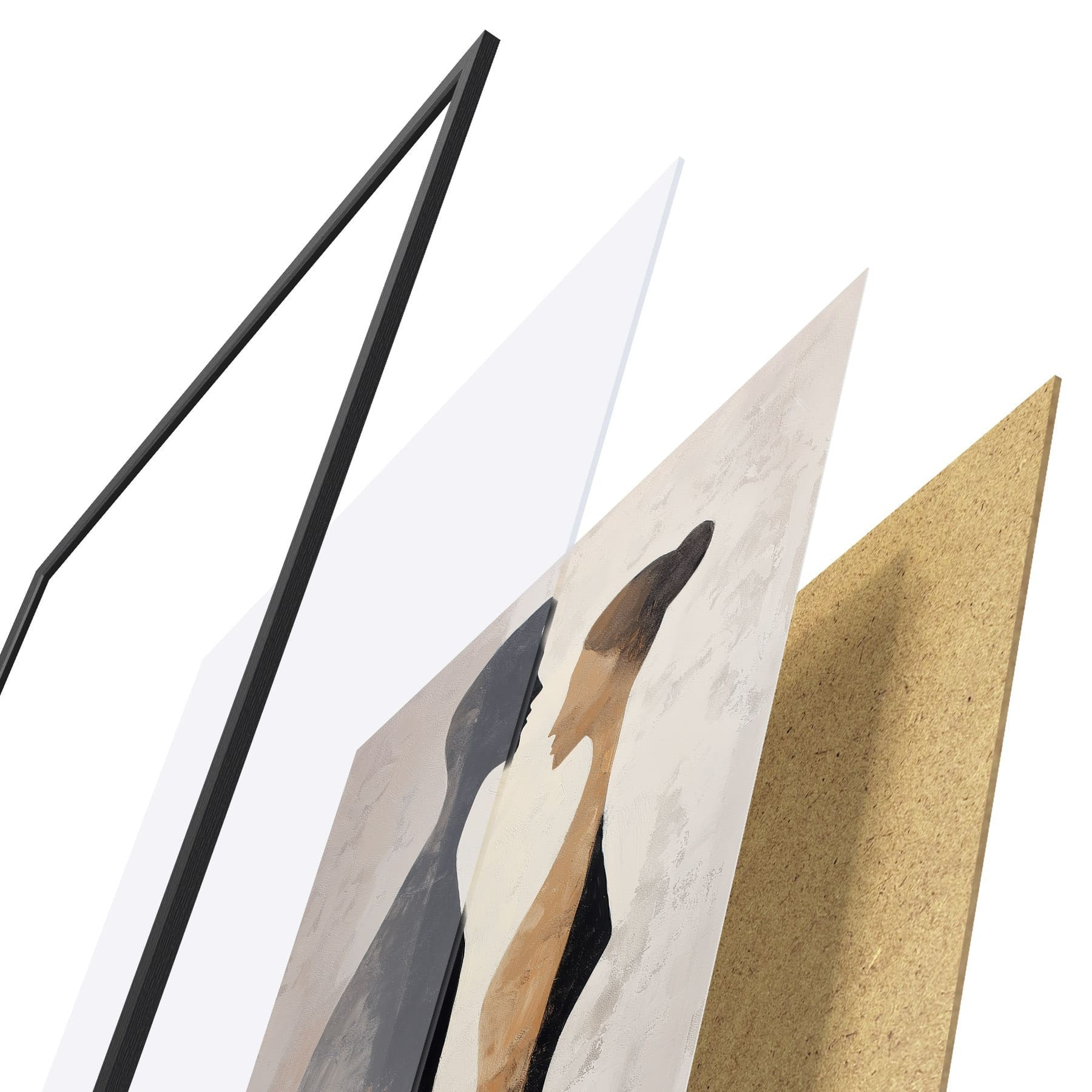 A poszter keretből, plexiből, nyomtatott képből és forgácslap hátlapból áll. A poszter a hátoldalon található rögzítőknek köszönhetően azonnal felakasztható a falra.