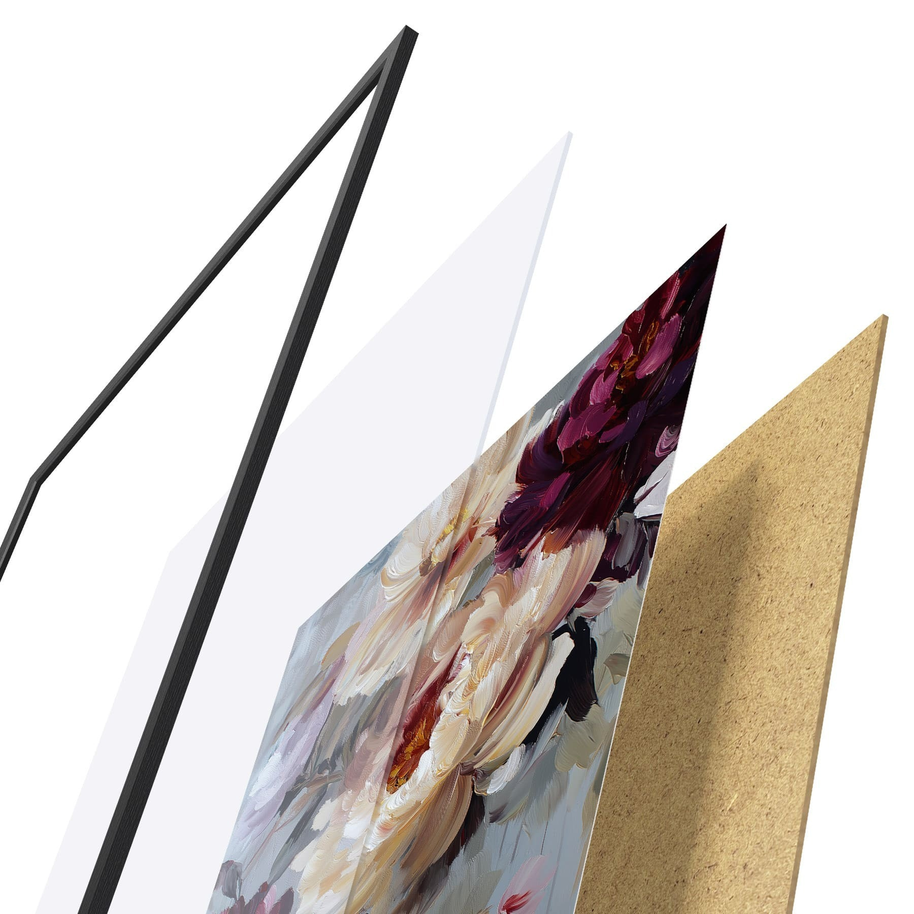 A poszter keretből, plexiből, nyomtatott képből és forgácslap hátlapból áll. A poszter a hátoldalon található rögzítőknek köszönhetően azonnal felakasztható a falra.