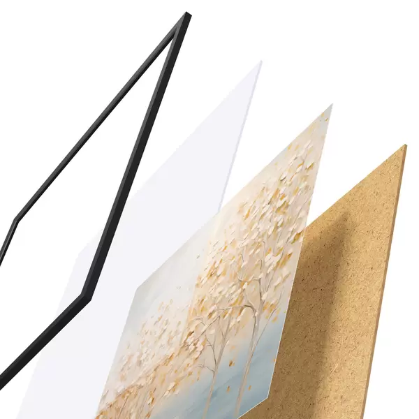 A poszter keretből, plexiből, nyomtatott képből és forgácslap hátlapból áll. A poszter a hátoldalon található rögzítőknek köszönhetően azonnal felakasztható a falra.