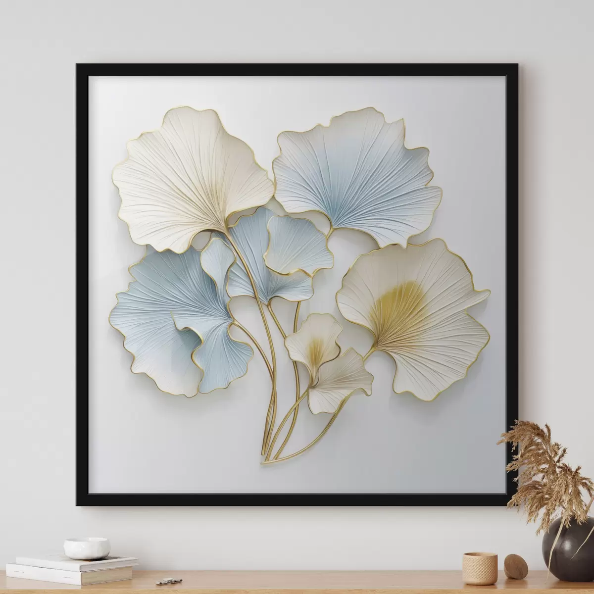 Plakát a sziklán Stilizált ginkgo-levelek kék és sárga díszítéssel f48398
