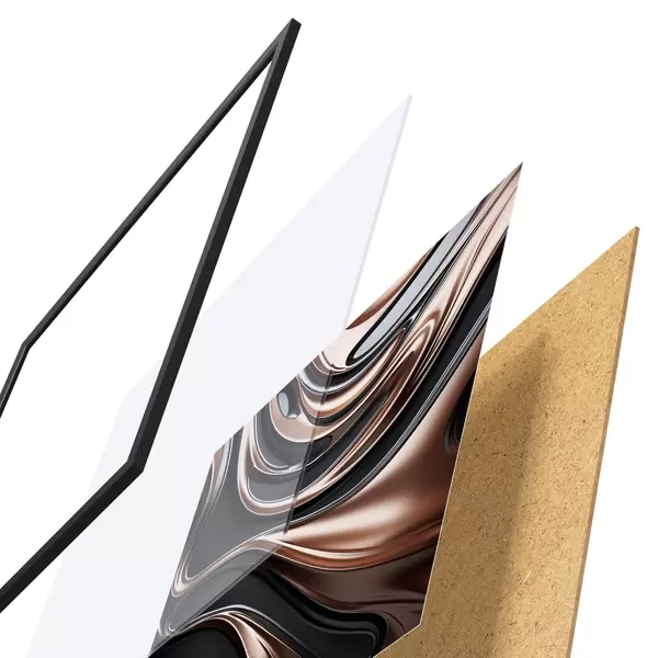 A poszter keretből, plexiből, nyomtatott képből és forgácslap hátlapból áll. A poszter a hátoldalon található rögzítőknek köszönhetően azonnal felakasztható a falra.