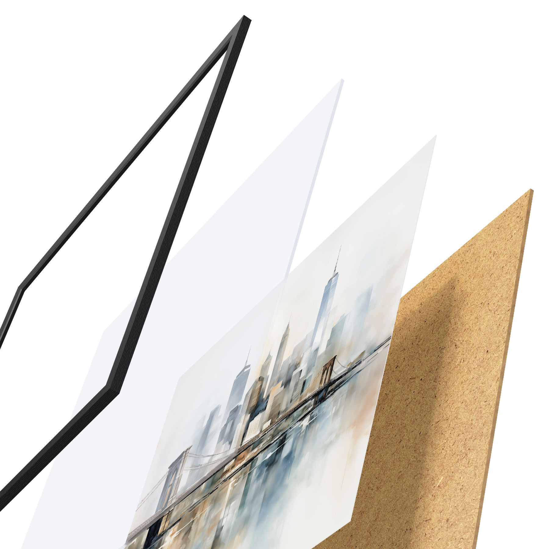 A poszter keretből, plexiből, nyomtatott képből és forgácslap hátlapból áll. A poszter a hátoldalon található rögzítőknek köszönhetően azonnal felakasztható a falra.