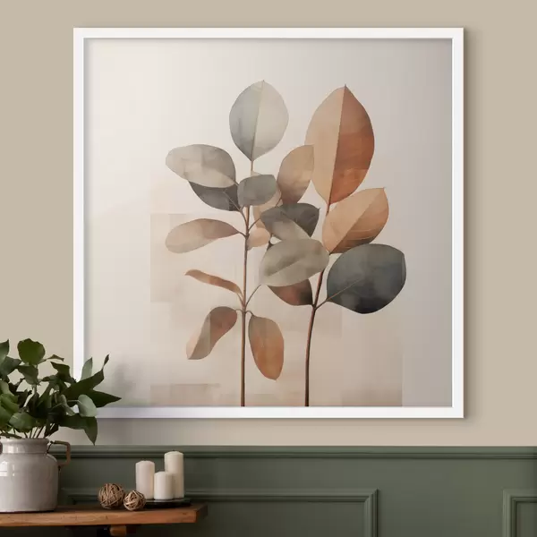 Poster Magas növények ovális levelekkel, tompított színekben és absztrakt téglalap alakú mintákkal Nr f48413