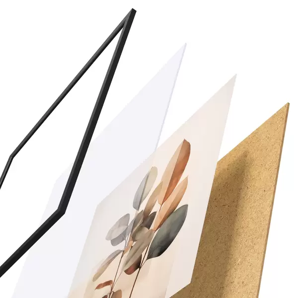 A poszter keretből, plexiből, nyomtatott képből és forgácslap hátlapból áll. A poszter a hátoldalon található rögzítőknek köszönhetően azonnal felakasztható a falra.