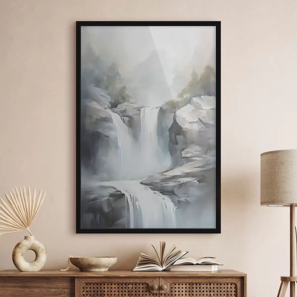 Plakát a sziklán Festményen ábrázolt vízesés f48416