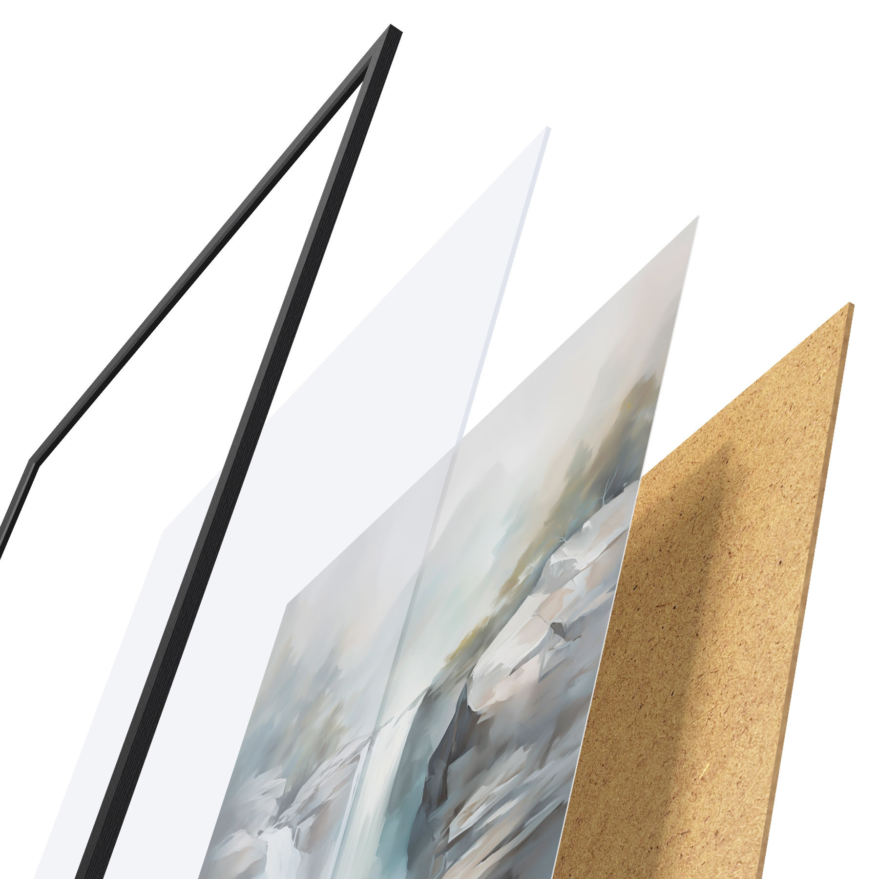 A poszter keretből, plexiből, nyomtatott képből és forgácslap hátlapból áll. A poszter a hátoldalon található rögzítőknek köszönhetően azonnal felakasztható a falra.
