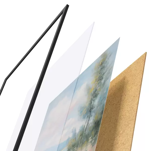 A poszter keretből, plexiből, nyomtatott képből és forgácslap hátlapból áll. A poszter a hátoldalon található rögzítőknek köszönhetően azonnal felakasztható a falra.