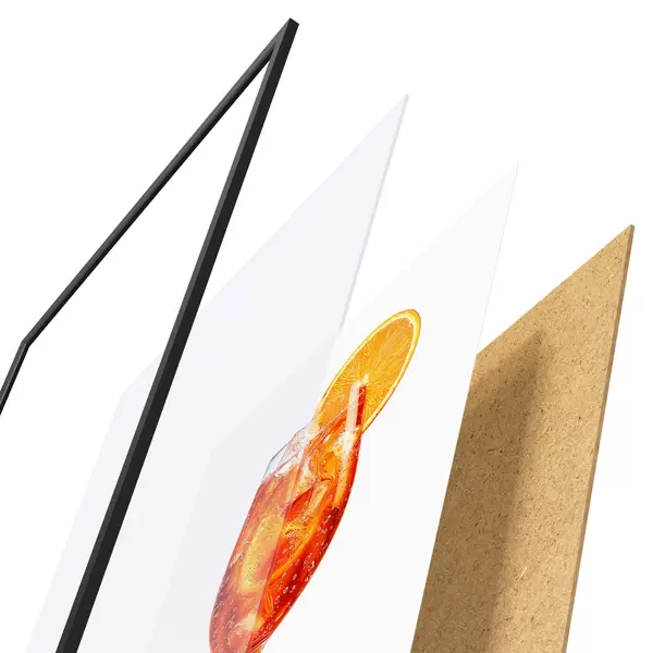 A poszter keretből, plexiből, nyomtatott képből és forgácslap hátlapból áll. A poszter a hátoldalon található rögzítőknek köszönhetően azonnal felakasztható a falra.