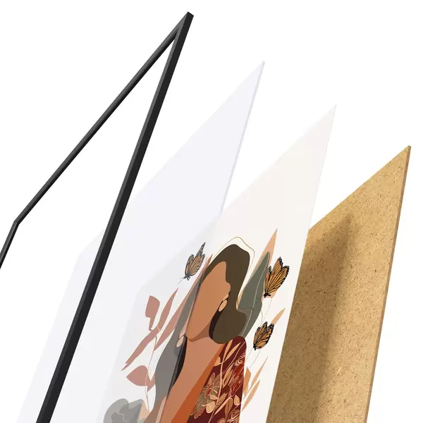 A poszter keretből, plexiből, nyomtatott képből és forgácslap hátlapból áll. A poszter a hátoldalon található rögzítőknek köszönhetően azonnal felakasztható a falra.