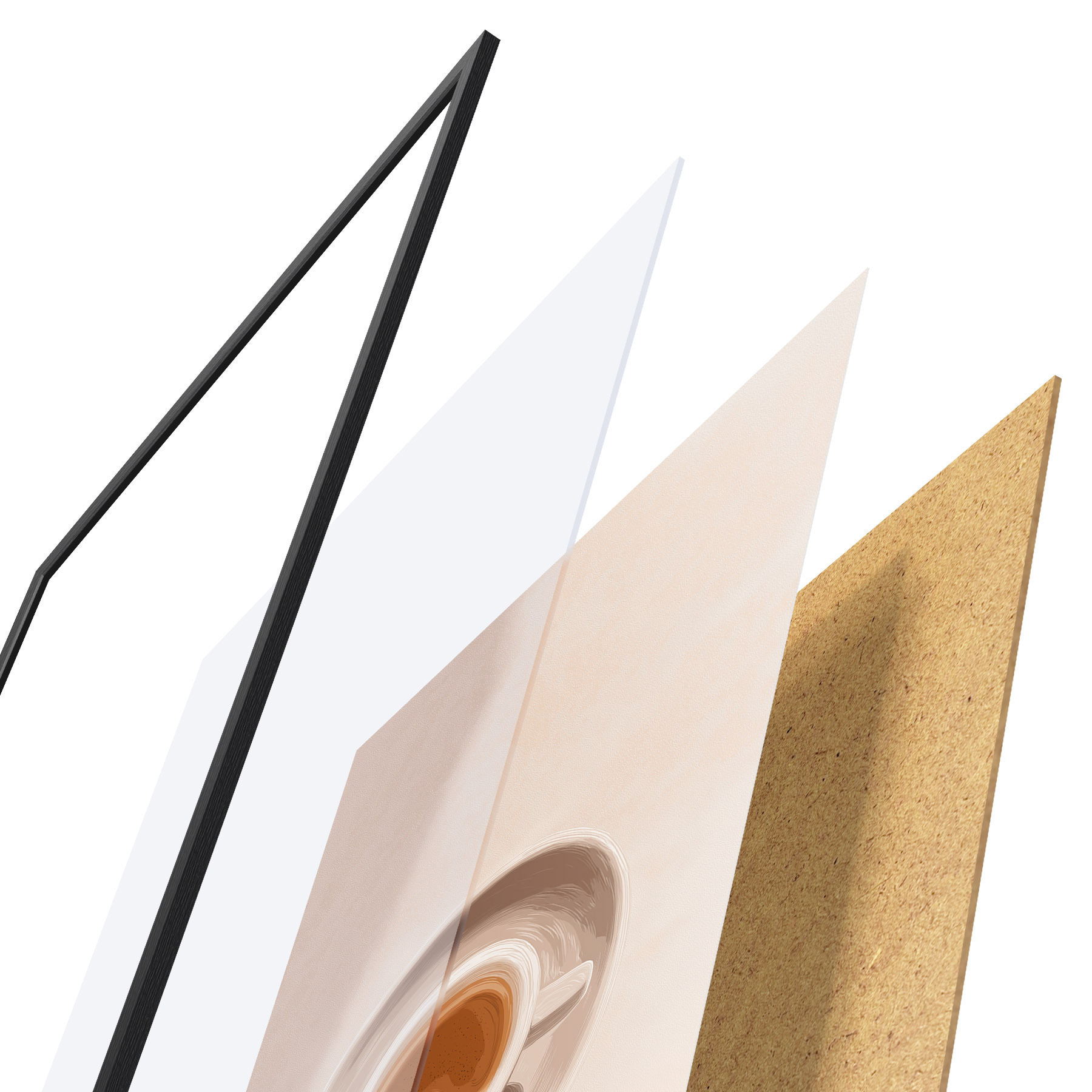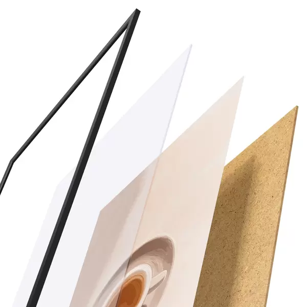 A poszter keretből, plexiből, nyomtatott képből és forgácslap hátlapból áll. A poszter a hátoldalon található rögzítőknek köszönhetően azonnal felakasztható a falra.