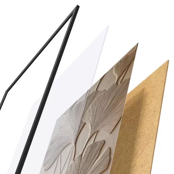 A poszter keretből, plexiből, nyomtatott képből és forgácslap hátlapból áll. A poszter a hátoldalon található rögzítőknek köszönhetően azonnal felakasztható a falra.