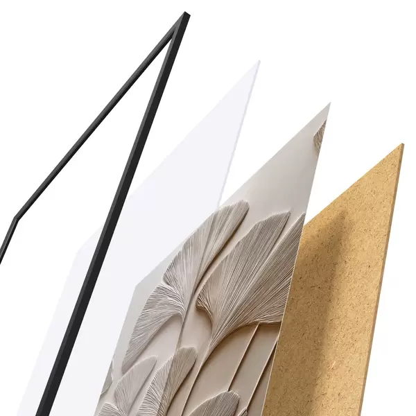 A poszter keretből, plexiből, nyomtatott képből és forgácslap hátlapból áll. A poszter a hátoldalon található rögzítőknek köszönhetően azonnal felakasztható a falra.