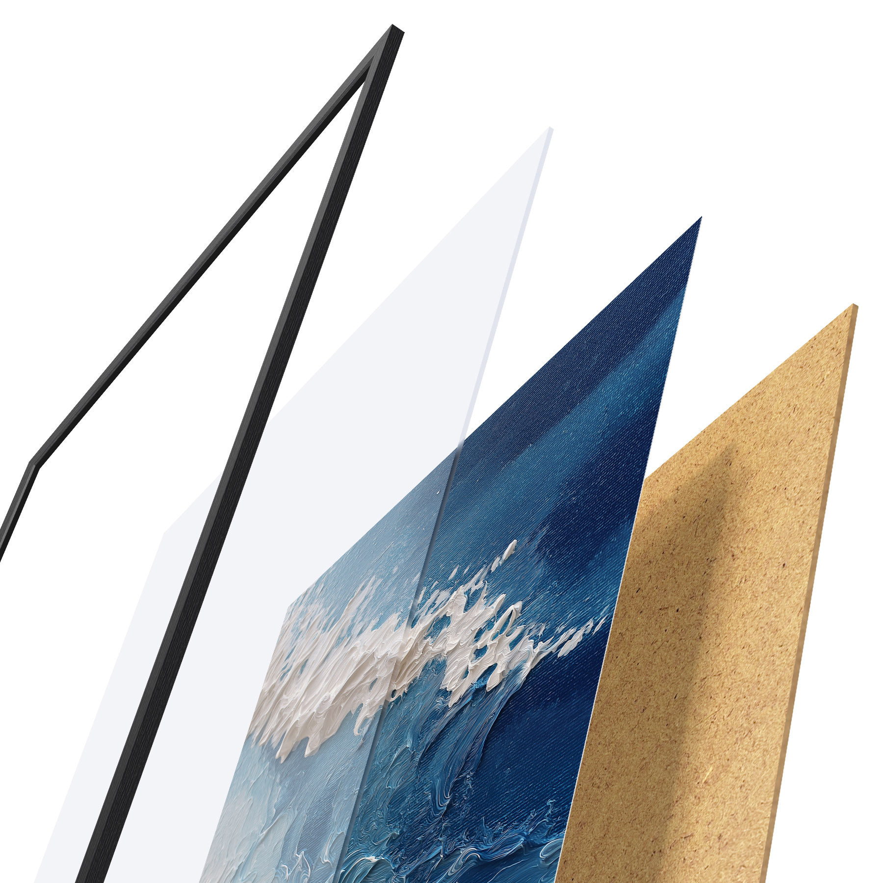 A poszter keretből, plexiből, nyomtatott képből és forgácslap hátlapból áll. A poszter a hátoldalon található rögzítőknek köszönhetően azonnal felakasztható a falra.