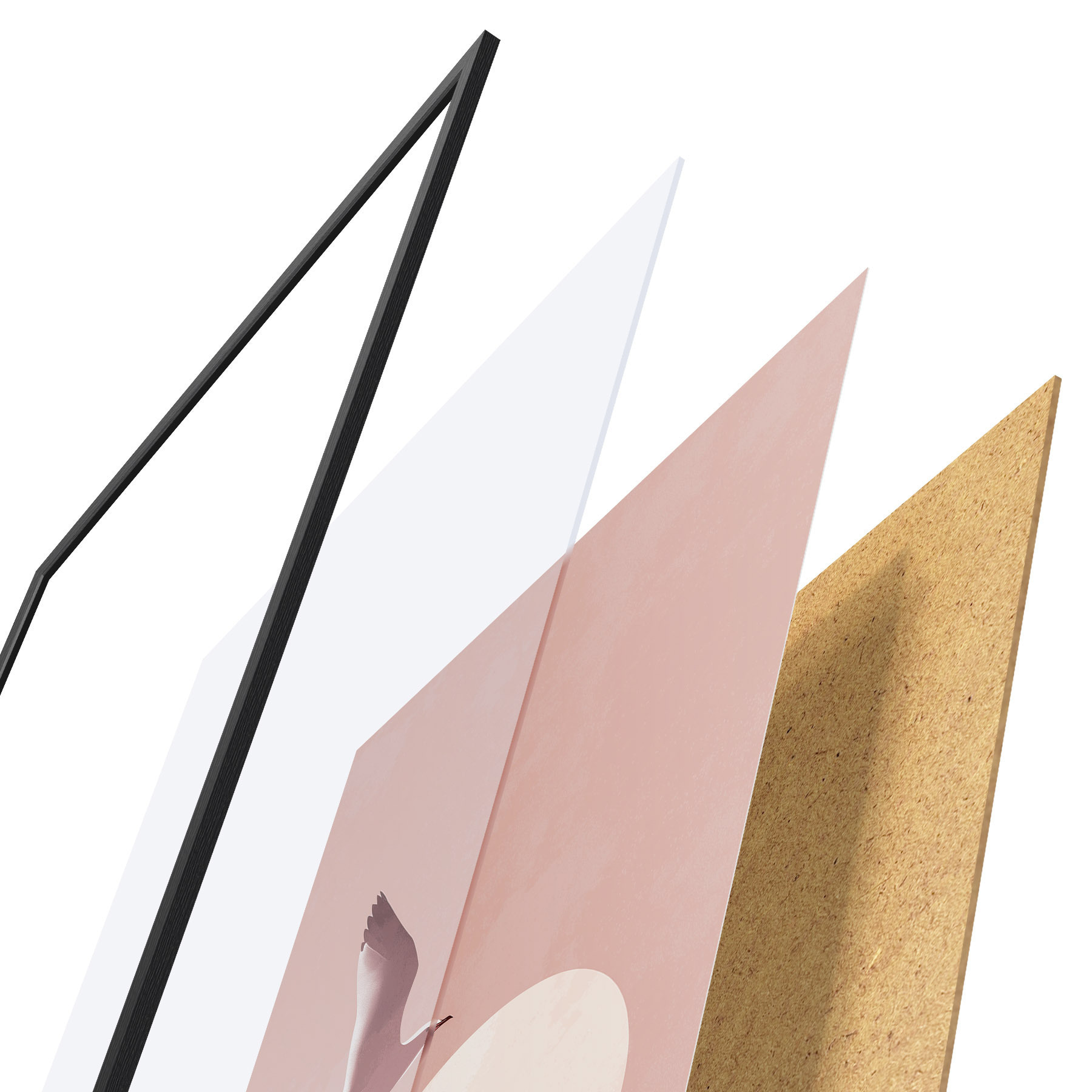 A poszter keretből, plexiből, nyomtatott képből és forgácslap hátlapból áll. A poszter a hátoldalon található rögzítőknek köszönhetően azonnal felakasztható a falra.