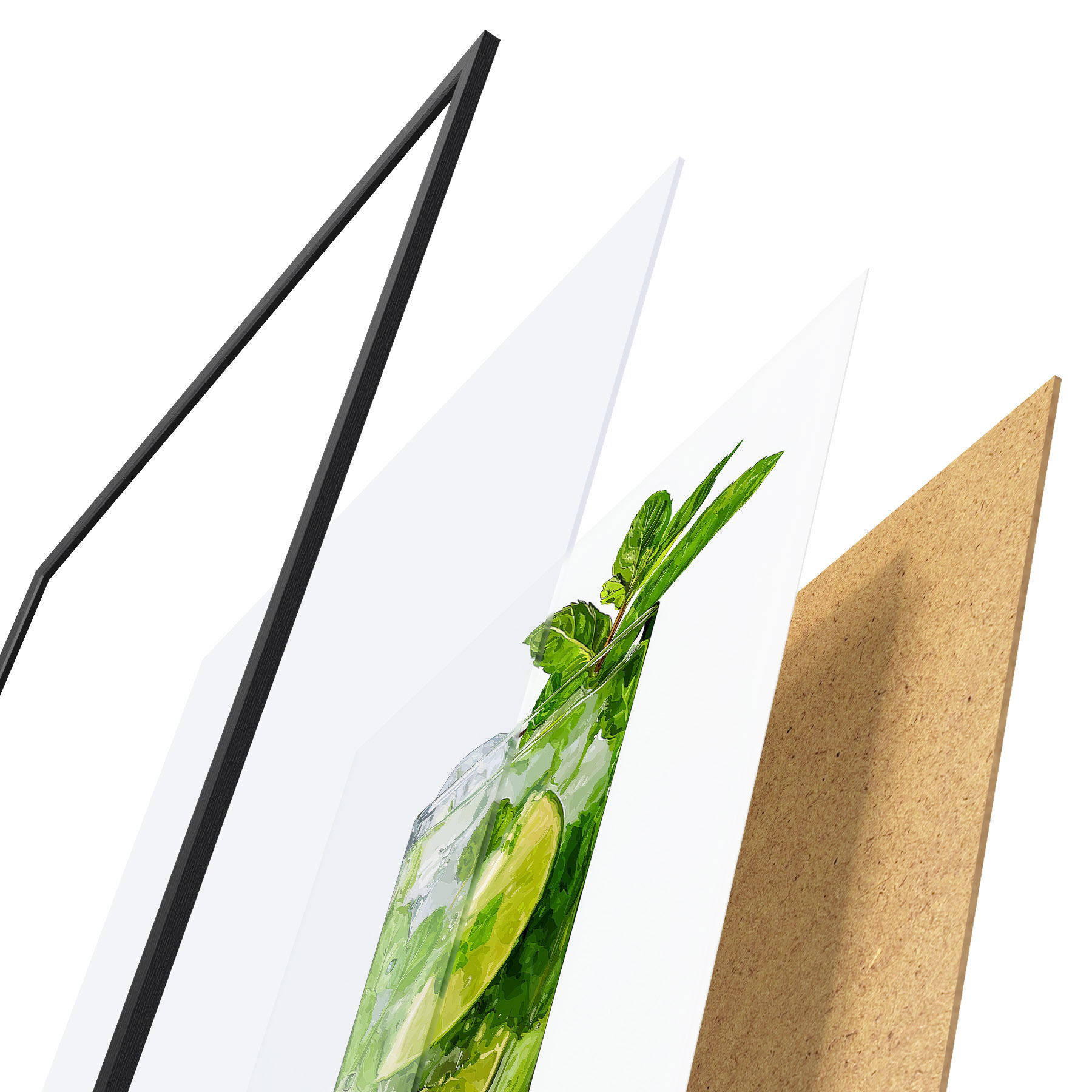 A poszter keretből, plexiből, nyomtatott képből és forgácslap hátlapból áll. A poszter a hátoldalon található rögzítőknek köszönhetően azonnal felakasztható a falra.